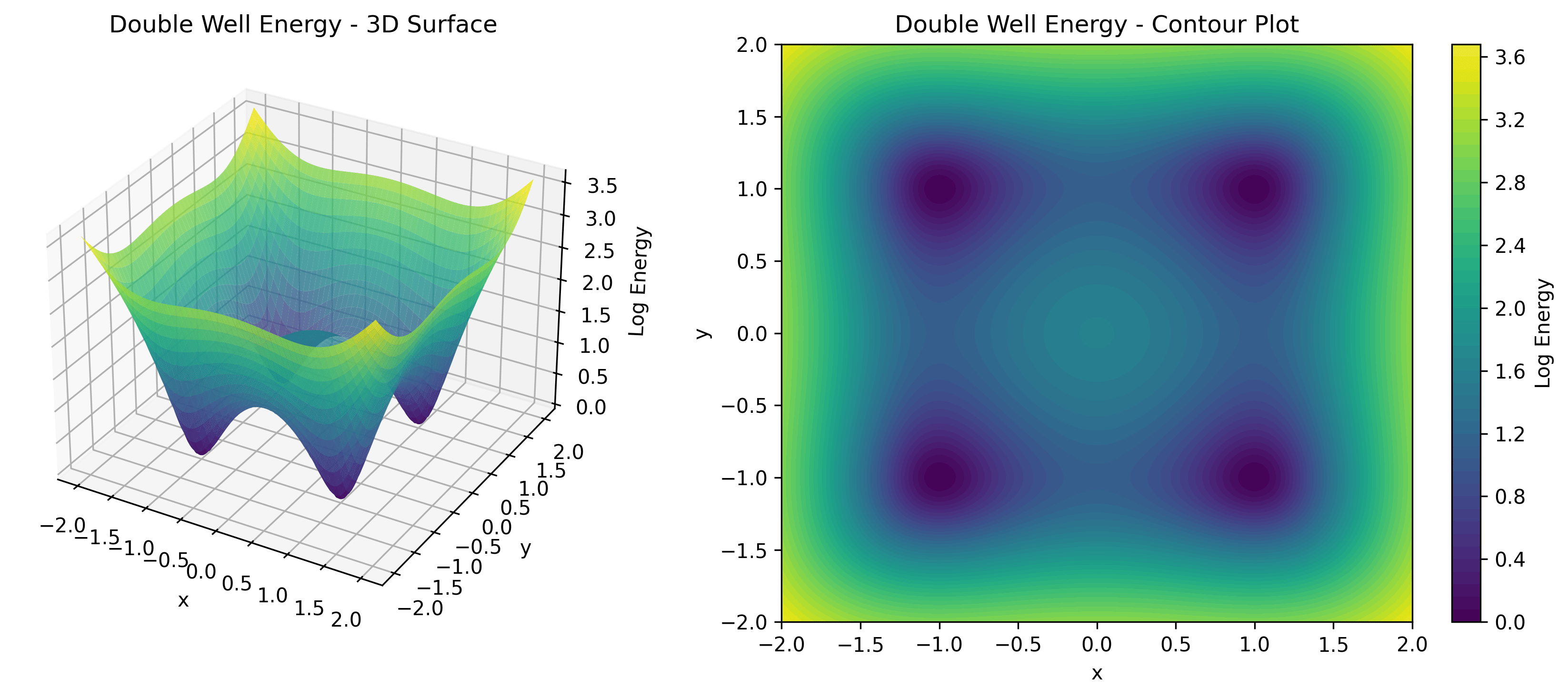 A 2D contour plot of the `DoubleWellModel` energy landscape.